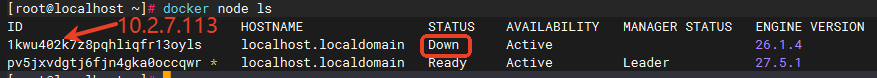 在主节点查看节点情况,会显示113这台主机的状态为down